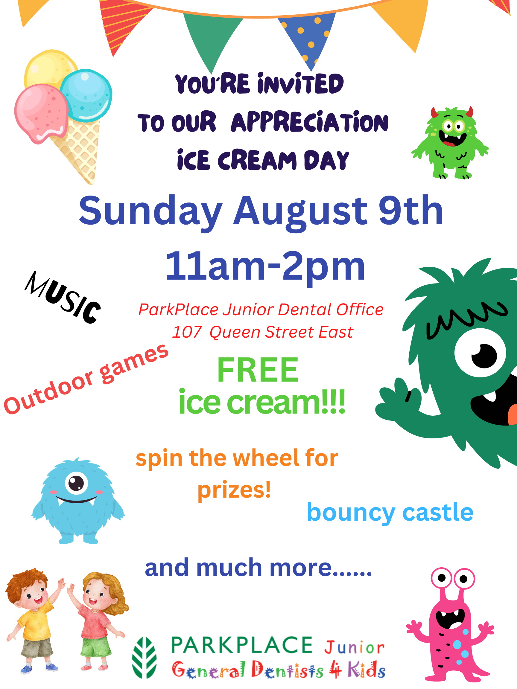 Join us for FREE ice cream along with tons of fun activities such as a bouncy castle, outdoor games, spin the wheel for fun prizes and more!